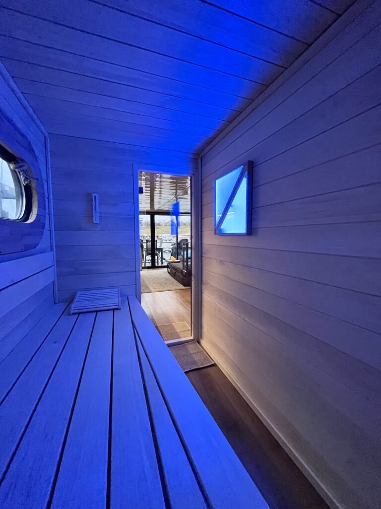 Unser Herzstück an Bord ist eine Finnische Sauna. Tauchen Sie ein in deine neue Wohlfühloase am Geiseltalsee. Tuen Sie sich etwas gutes und fühlen Sie die wohlige Hitze unseres Saunaofens in unserem neuen Wohlfühlbereich.